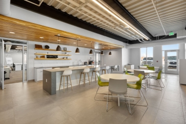 The contemporary kitchen offers great space for food prep as well as serving food to guests. The island can seat up to 12 and additional seating is available in the kitchen area.